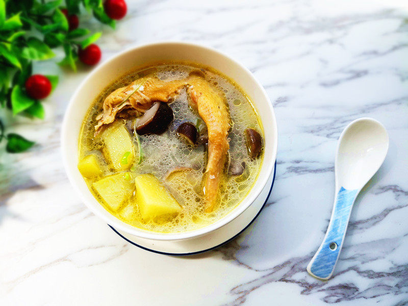 土豆两个;鸡汤一碗;胡萝卜半根;香菇两朵;