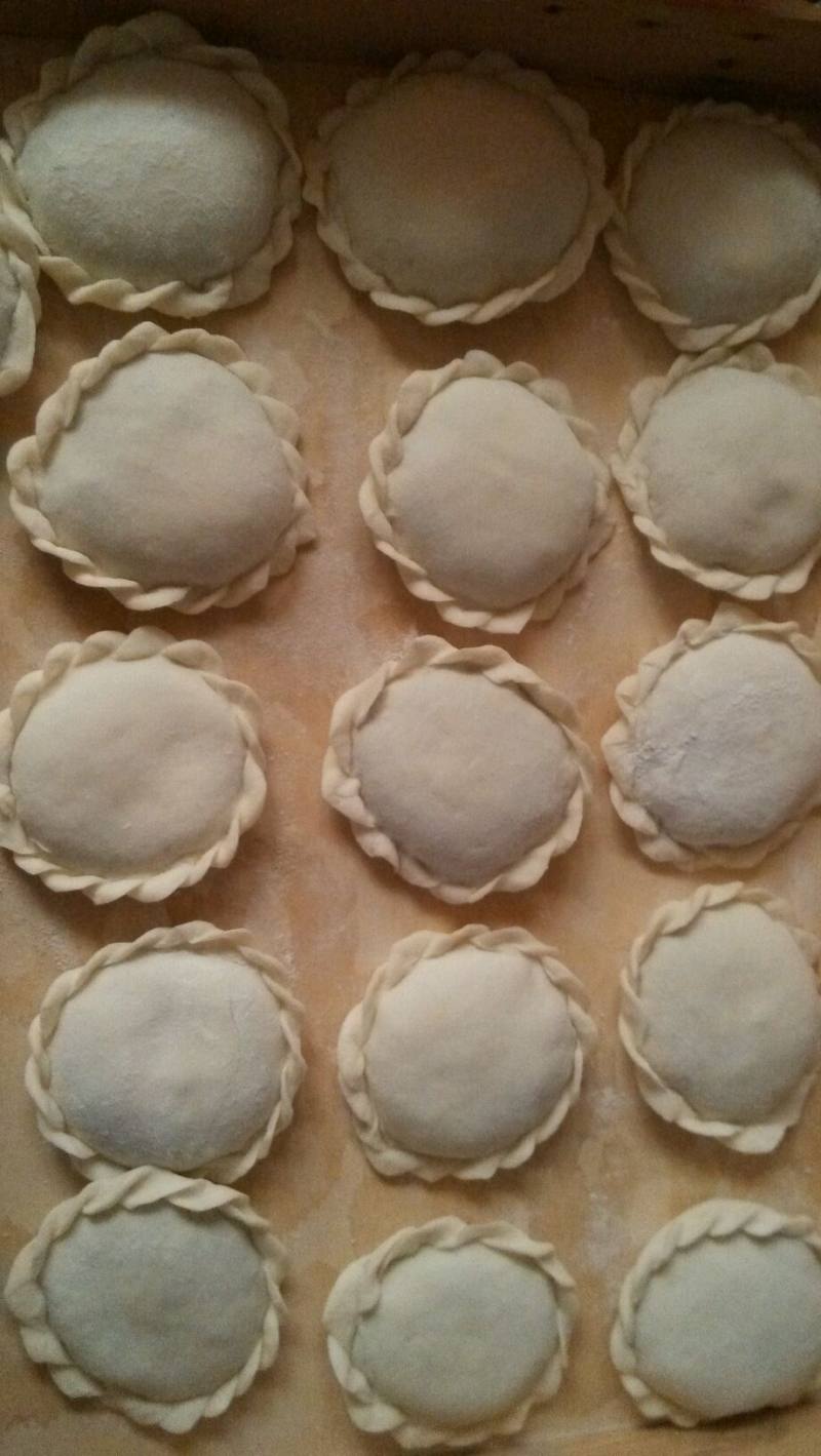 10:我们喜欢吃薄皮的,所以皮擀得很薄,把和好的馅放到圆皮的一半处
