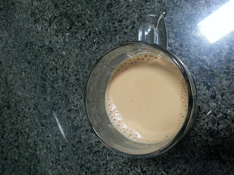 尽量将茶叶搅打得细碎一些,口感会更好。打好的奶茶有浓稠的泡沫,不影响饮用。