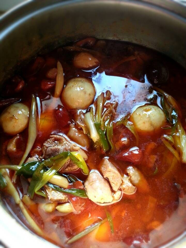 12:放入剩下的蒜瓣及香葱继续煮三十分钟。