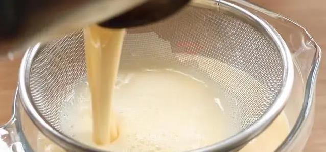 接下来,得把这锅奶糊过滤一下。为什么要滤?因为鸡蛋里有些筋膜,白糖也可能没完全化开,滤一遍能让奶糊更顺滑。拿个细网筛,把奶糊倒进去,慢慢过滤,滤完的奶糊看起来就像丝绸一样光滑。这步做好了,奶糕的口感就成功了一半。别嫌麻烦,这可是让甜品变“高级”的关键!