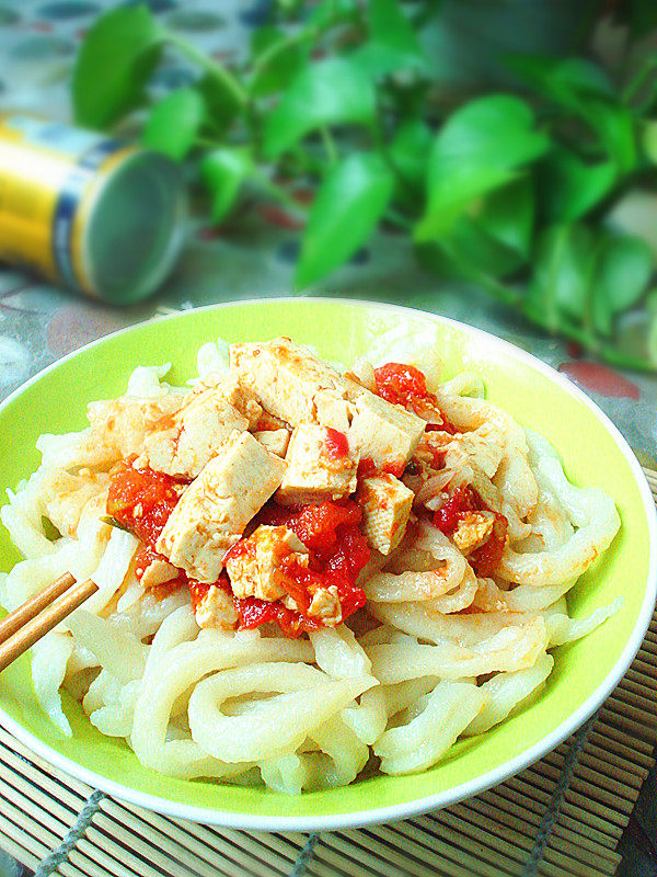 4:炒好的西红柿浇头,里面炖了些豆腐。