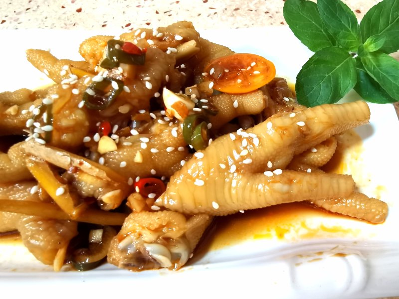 18:冷藏过的鸡爪,开吃之前面上撒一些熟芝麻,麻辣鲜香,酸甜适中,皮脆爽口,口感丰富,下个小酒,完美!