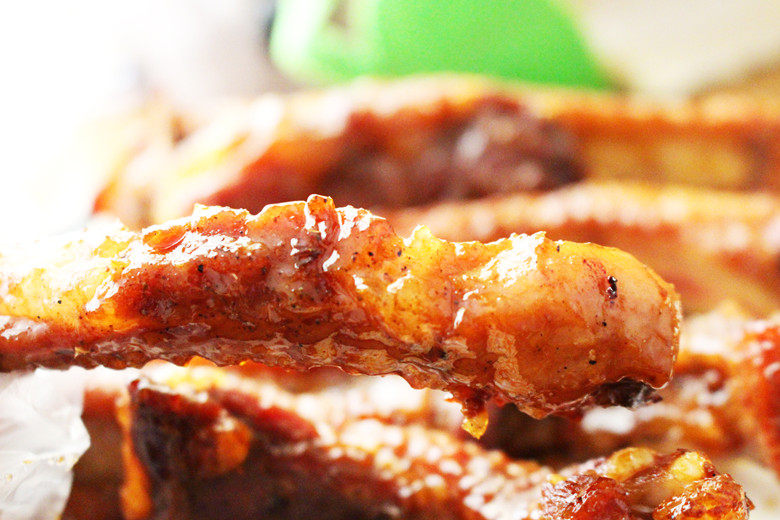 7:30分钟后,再次取出,刷上麦芽糖水,并将排骨翻转,再放入烘烤5分钟,出炉。