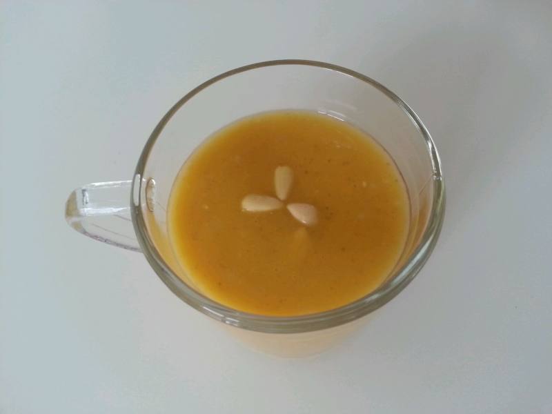 9:取下果汁杯,将玉米南瓜糊倒入碗中即可享用。