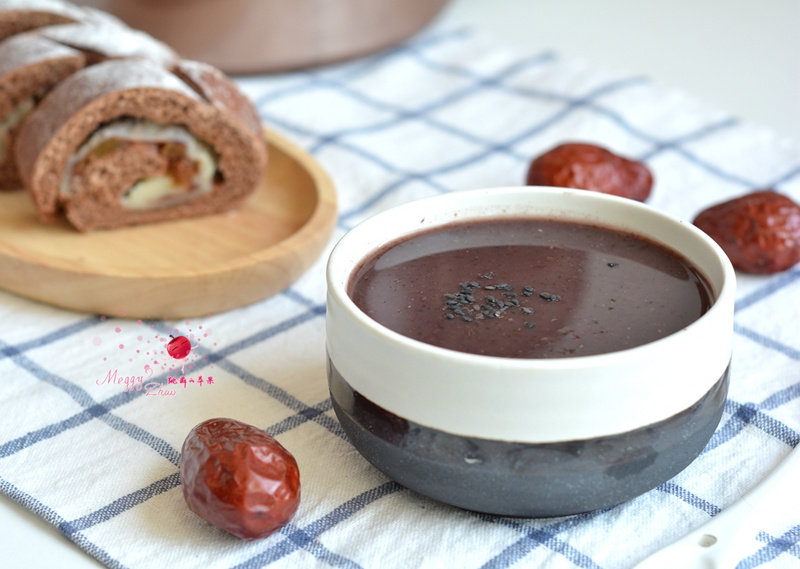 7:放点红枣碎和黑白芝麻,温热后即可食用。
