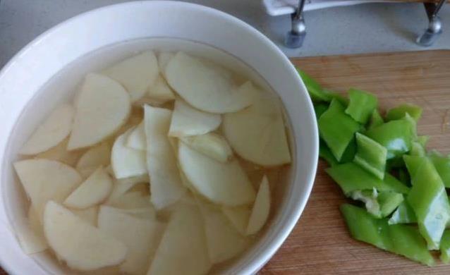 先说土豆怎么准备。挑两个黄心土豆,大概400克,剥皮后切成2毫米左右的薄片。切好后马上扔进清水里泡10分钟,再用流水冲2分钟,把表面的淀粉洗干净。这样土豆片炒出来才脆,不粘锅。