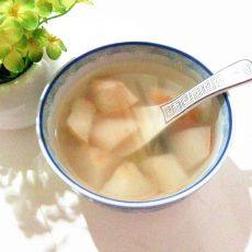 4:冷水锅加入雪梨块和生姜煮开后转小火慢炖40分钟