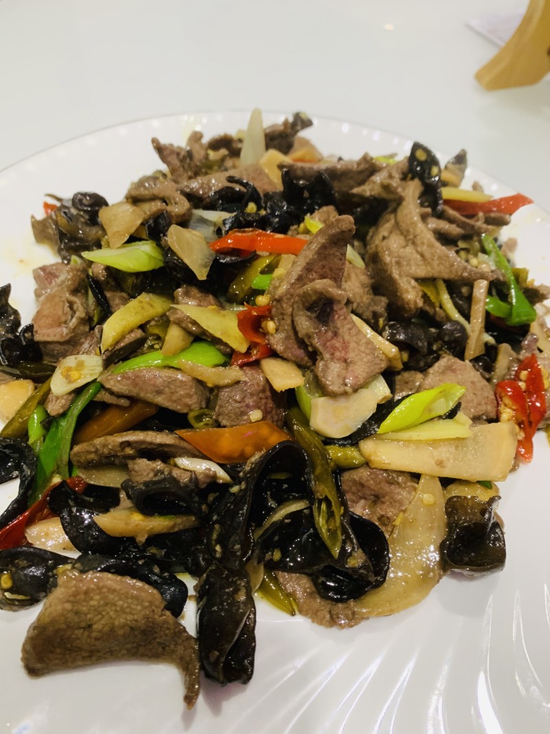 1:主料:猪肝辅料:葱段木耳笋片调料:盐糖鸡精豆粉生抽醋