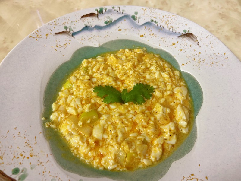 6:待稍微凝固翻炒均匀即可出锅。