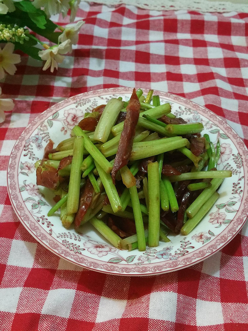 腊肠炒芹菜
