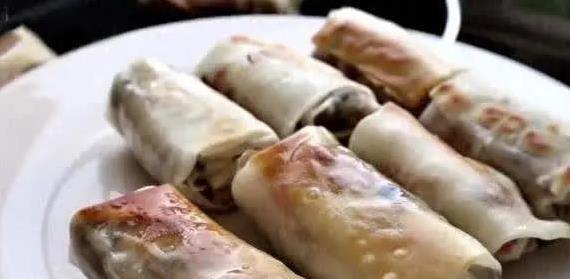 面皮蒸好后,趁热一张张撕开。撕的时候轻点,别太急,破了就影响卖相。馅料铺在面皮一头,上下对折,再从一端卷起来,收口处抹点清水粘紧。包好的糯米卷胖乎乎,像个小卷饼,摆在盘子里看着就让人饿。