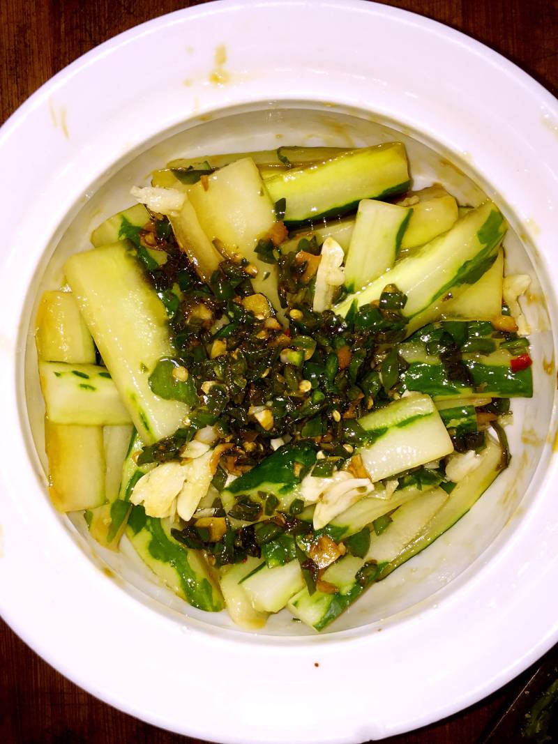 2:黄瓜切条,蒜拍成泥。需要动刀的仅此两样!