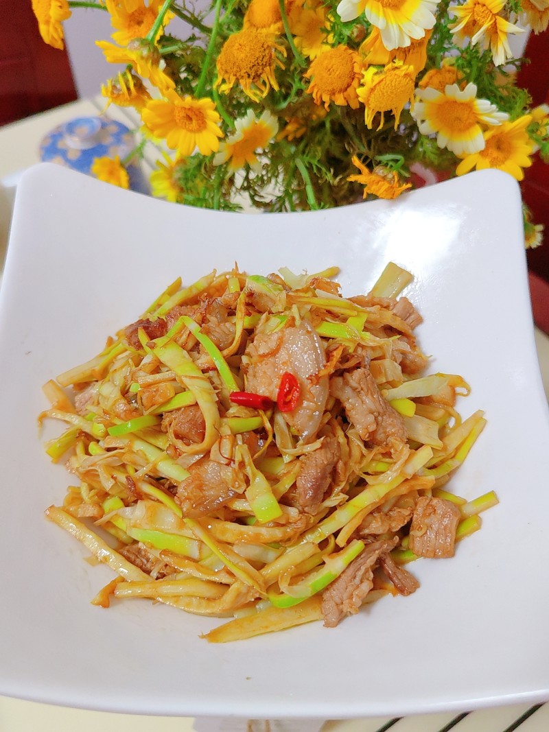蒜苔竹笋炒肉丝