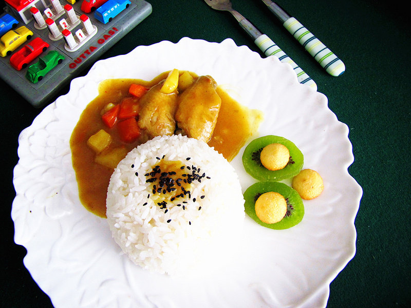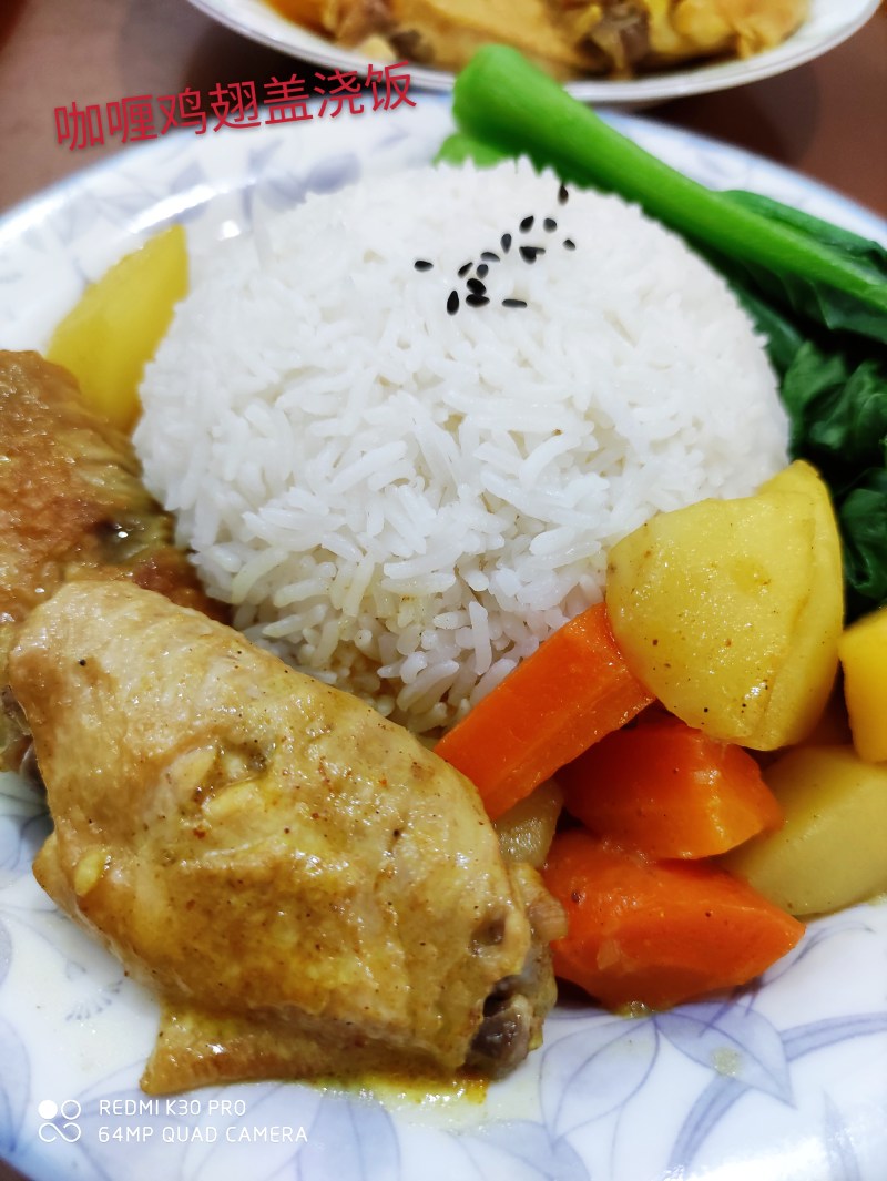 10:浇上炖好的咖喱鸡块即可,舀些汤汁更美味