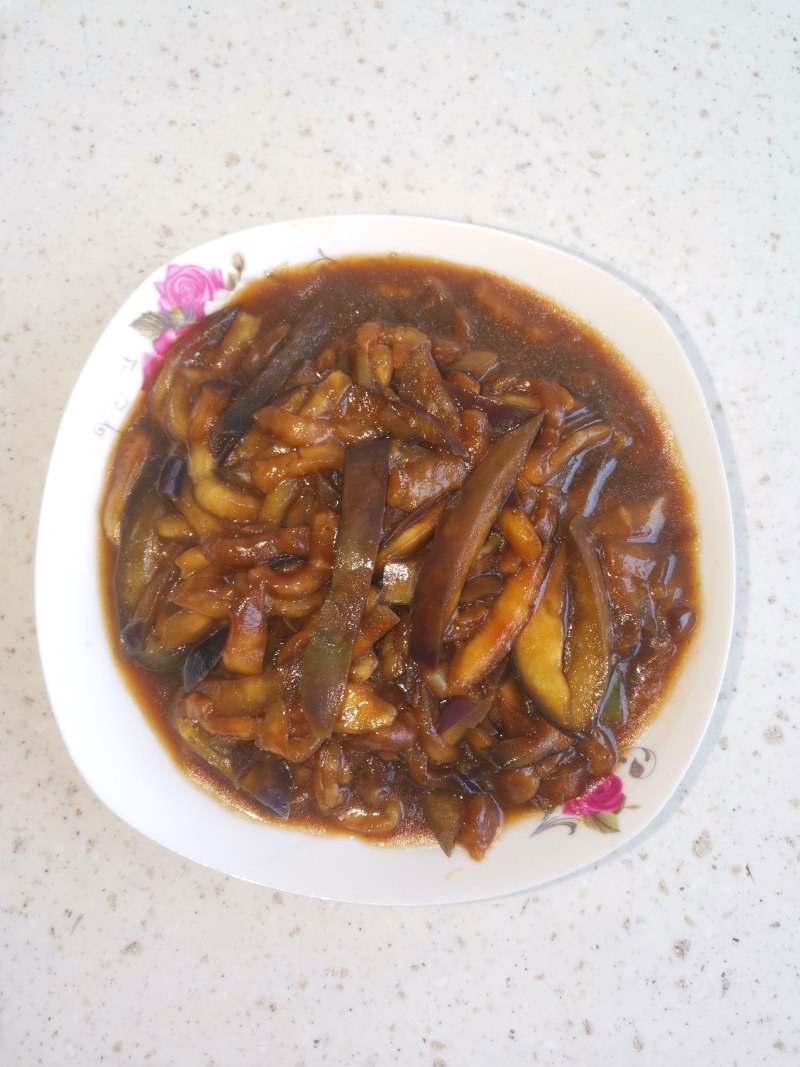茄子切得细一些,更容易成熟。茄子入锅后会比较干,可以加少许清水翻炒,但水不要加得太多。