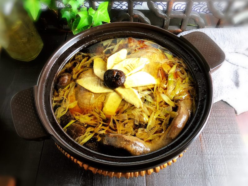 太湖麻鸭1只;猪蹄1只;冬笋1个;冬菇8个;