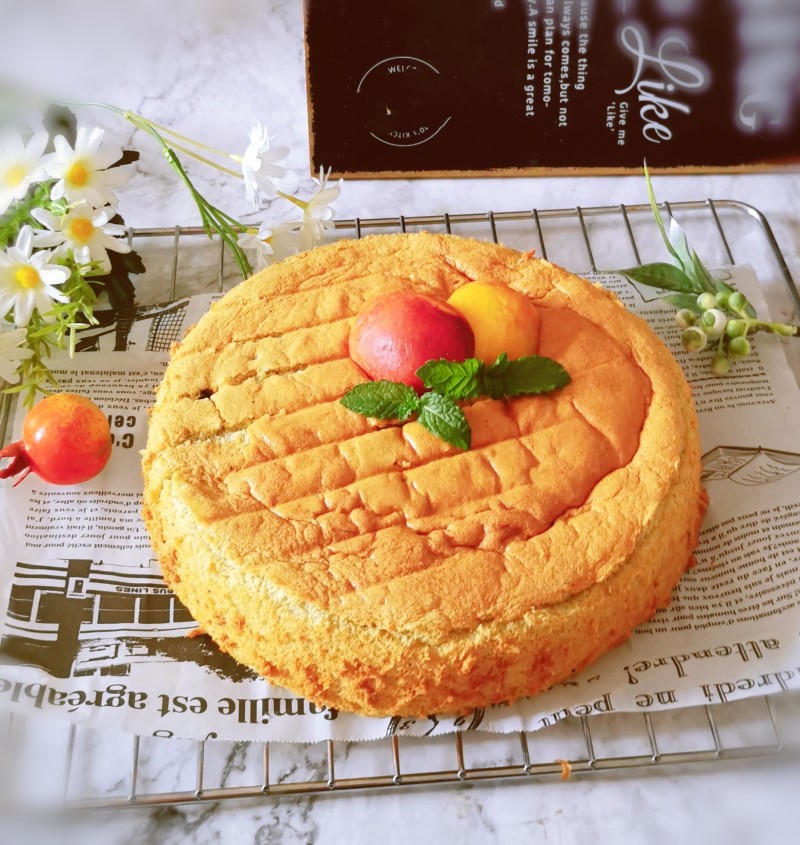 14:时间到,取出,用牙签扎入,牙签取出时干净利落,表明已烤熟,倒扣晾凉,脱模。