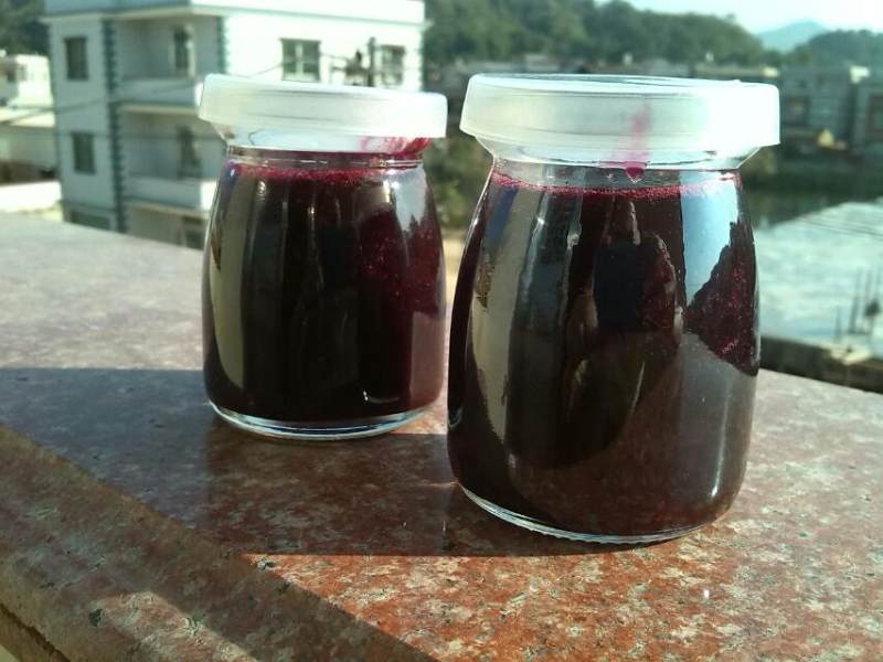 4:500g蓝莓,产6-7两果酱。冷却后放入消毒的容器里,放冰箱,可存1个月。