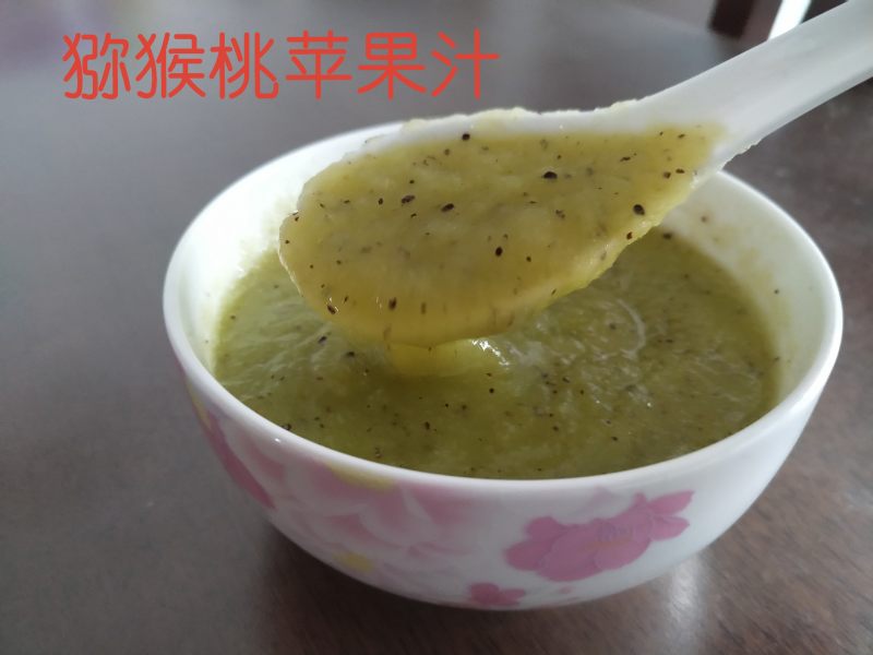 5:猕猴桃.苹果和温开水一起放入榨汁机,榨汁。