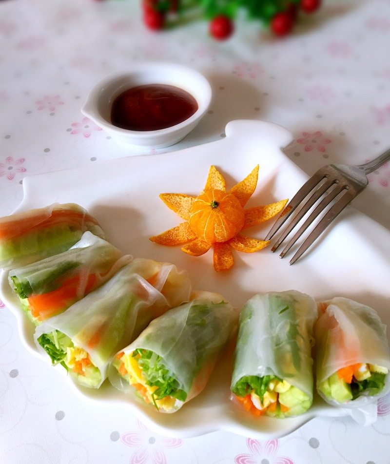 水晶皮6张;胡萝卜半根;苦苣50g;黄瓜1根;鸡蛋1个;