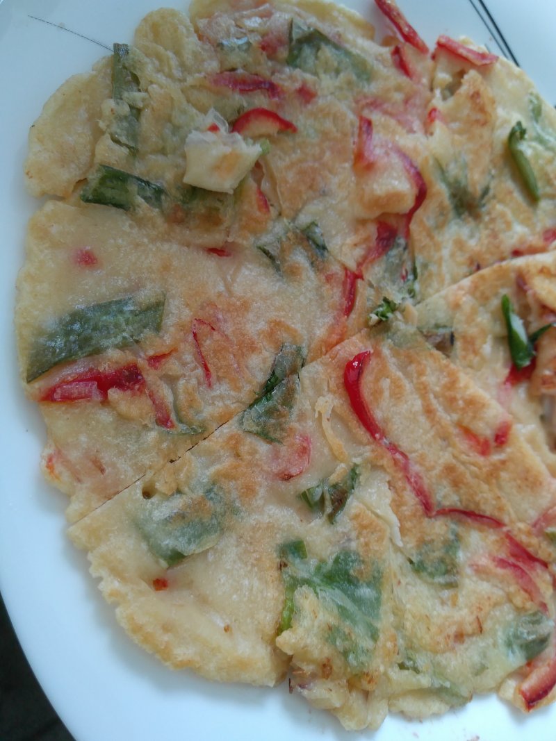 9:上锅人适量油加热,放入面饼煎至一面金黄。