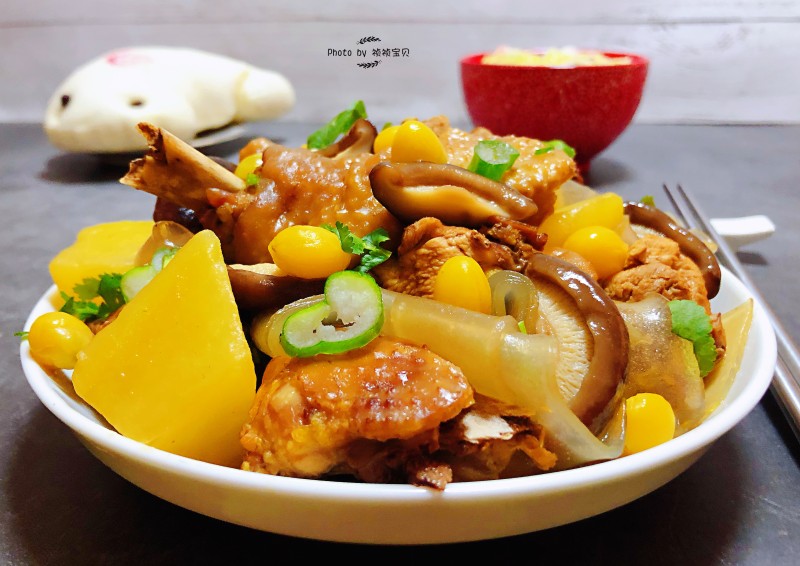 14:白果炖鸡混搭土豆、香菇、宽粉看着就非常有食欲。