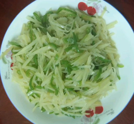 6:炒好的青椒土豆丝出锅啦。