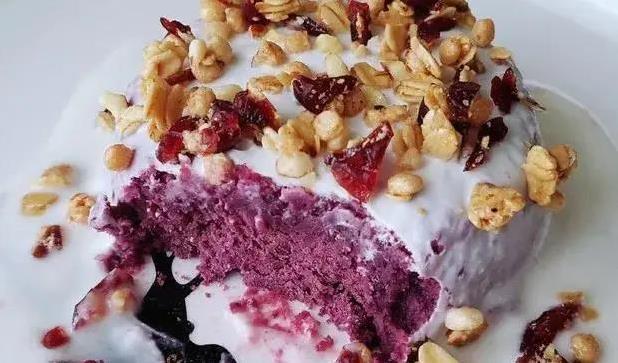 紫薯酸奶泥,颜值高到能上桌当大菜。先把紫薯去皮切块,扔锅里蒸半小时,筷子一戳就透的那种。蒸好后加点牛奶,拿勺子压成细腻的泥,牛奶让口感更顺滑。把泥装进小碗,垫上保鲜膜,倒扣到盘子里,捏成好看的形状。淋上酸奶,撒点燕麦或水果粒,摆盘跟餐厅似的。这道菜低脂又健康,下午茶吃一口,心情都变好。