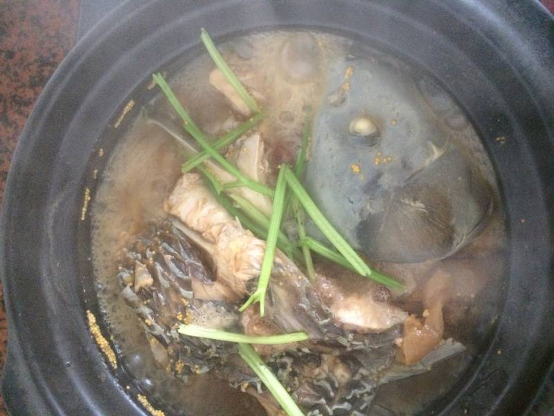 8:烧好后放盐,鸡精,鱼汤要多,起锅后撒上葱碎。