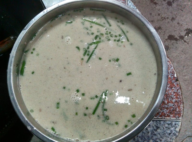 3:大火煮30分钟,奶白色的汤浓稠,味美!