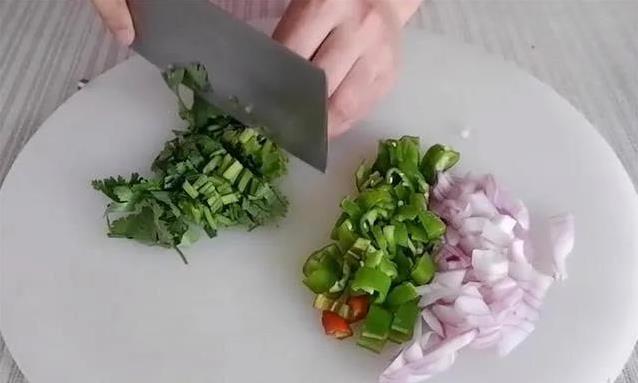 泡榨菜的空档,准备点配菜,增香又提味。紫洋葱切点小丁,颜色好看,味道带点甜。辣椒切碎,喜欢辣的可以多放点,不喜欢就少来一点,点缀就好。
