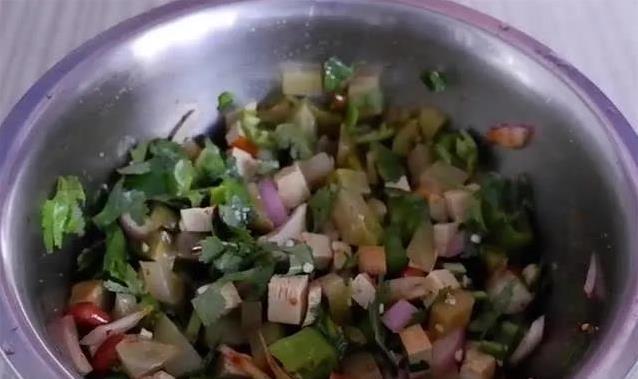 榨菜泡好后,沥干水分,装进大碗里。把紫洋葱、辣椒、香菜、香干一股脑儿倒进去,撒点盐和味精提鲜。别放太多盐,榨菜本身就有点咸味,适量就好。