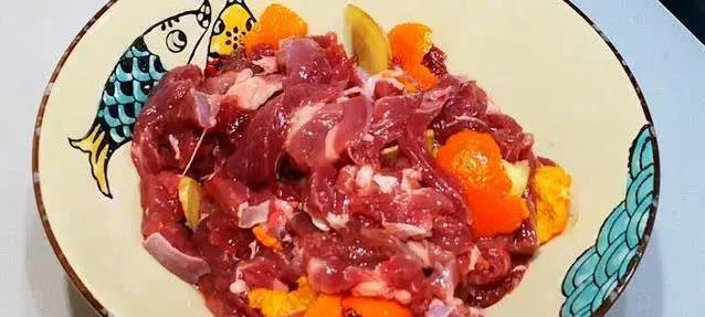 抓点料酒、几片姜,再扔几块桔子皮进去,拌一拌,腌15分钟。这一步可不是随便弄弄,桔子皮能吸走羊肉的怪味,让肉更香。腌好后,把桔子皮和姜片挑出来,别留着碍事。
