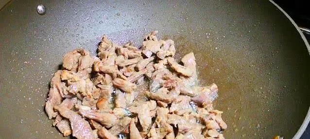 热锅倒油,油热了就把腌好的羊肉扔进去。大火快炒,动作要快,羊肉变色就赶紧盛出来。别炒太久,不然肉就老了,嚼不动!