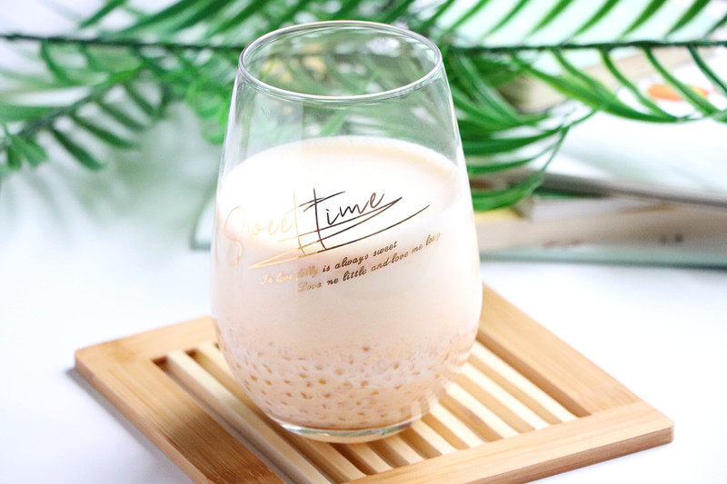 10:取一个杯子倒进南瓜牛奶,把滤去水分的西米混合在里面即可。
