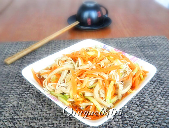 豆皮适量;胡萝卜适量;葱适量;香菜适量;