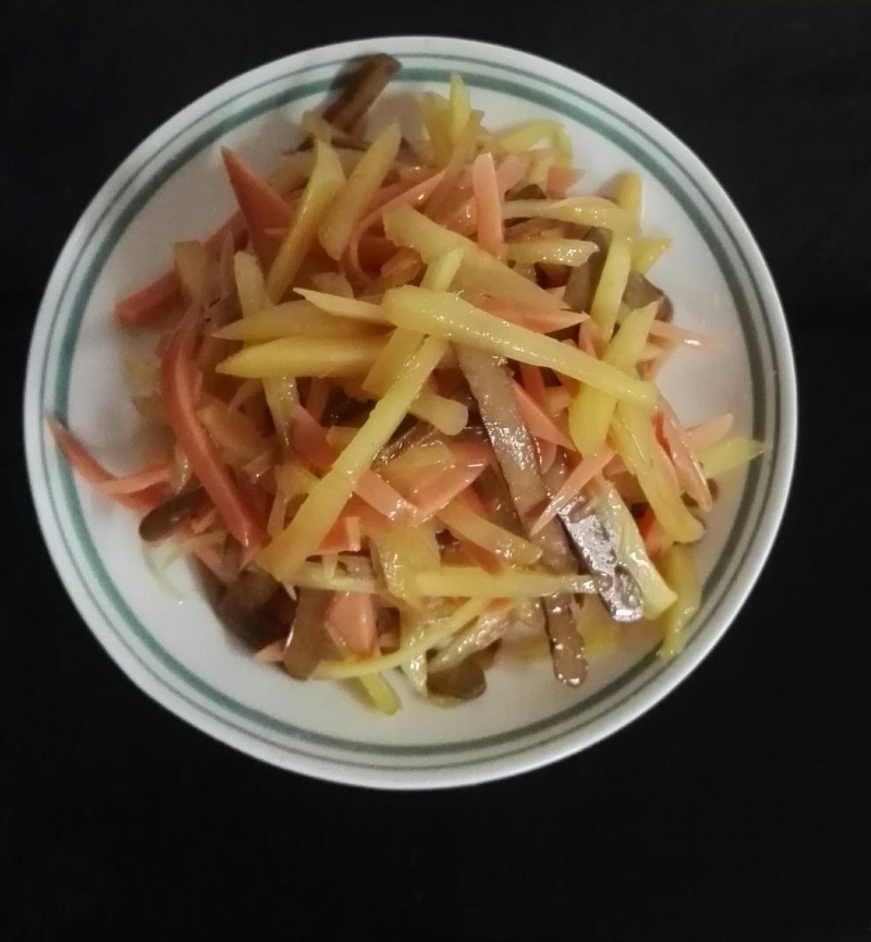 11:放入三丝拌匀即可,也可以根据自己的喜好加入一些红油。