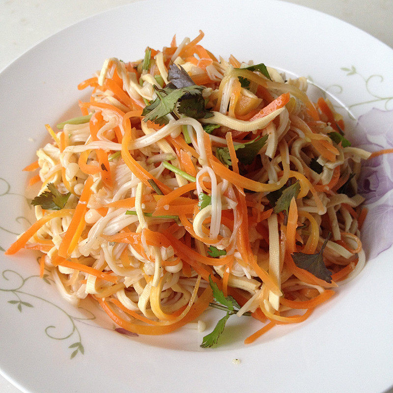 胡萝卜1根;豆腐丝适量;金针菇适量;