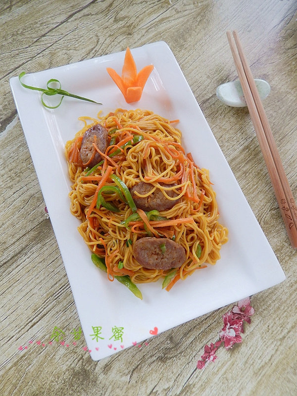 腊肠炒玉米面条
