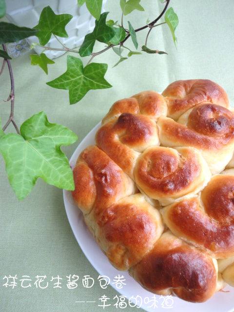 高精粉250克;砂糖45克;盐3克;酵母5克;水110;蛋液25克;黄油15克;花生酱适量;