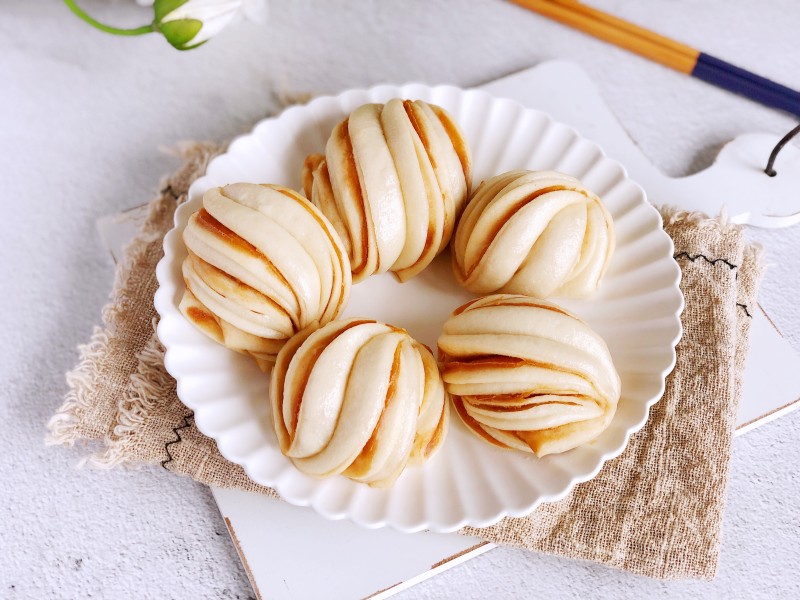 10:锅中放水烧开,笼屉上放潮湿笼布,如果没有可以刷油代替。把花卷放上,视花卷大小蒸15-20分钟。成熟。