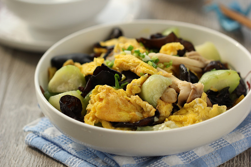 丝瓜蘑菇炒鸡蛋