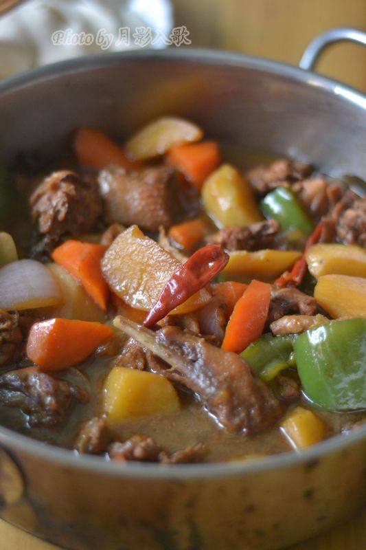 11:放入土豆,胡萝卜和洋葱,小火焖30分钟。