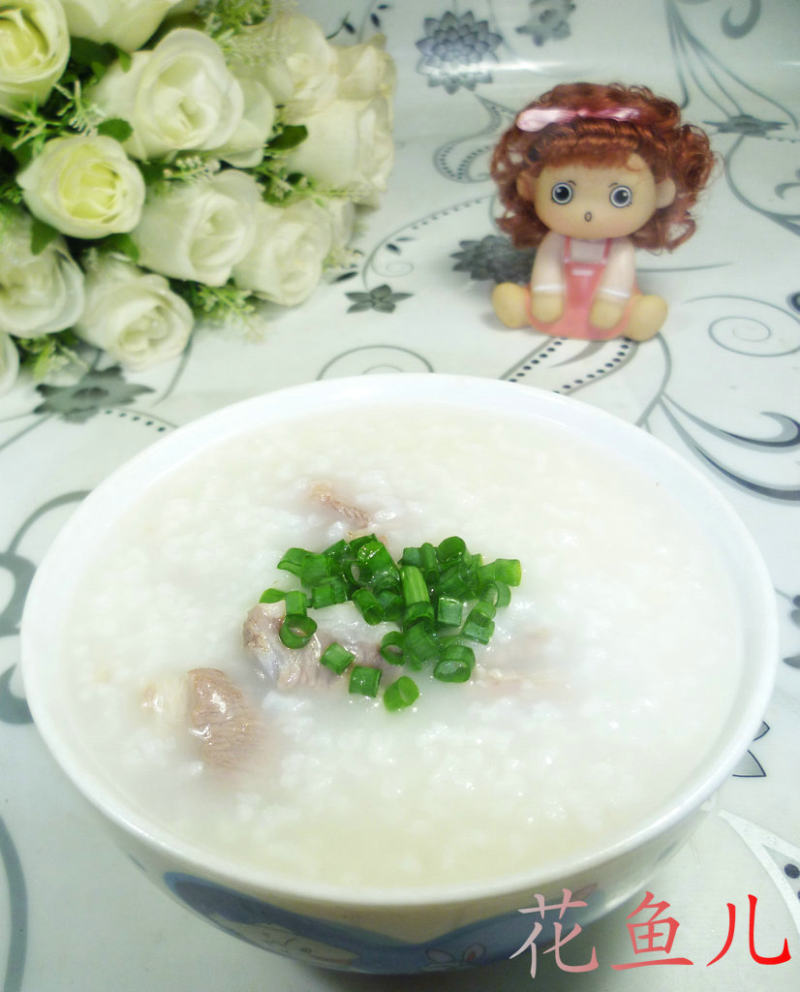 1:材料:大米(已淘洗)、排骨(已焯水)、葱花