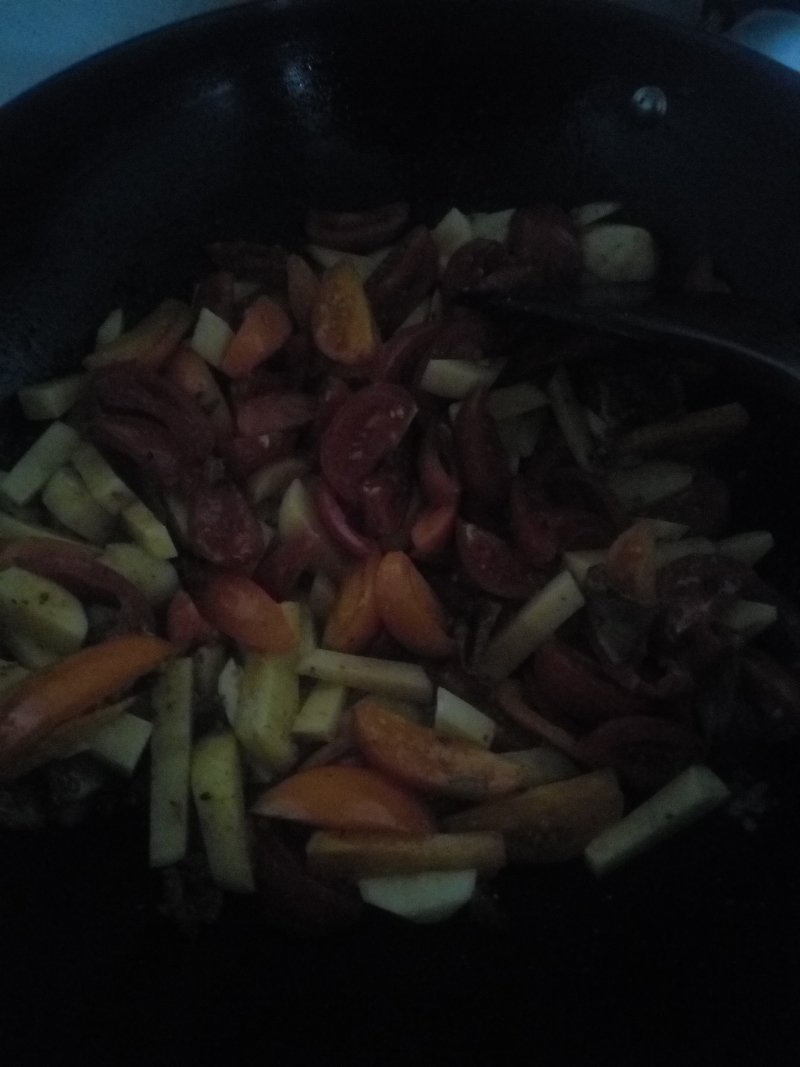 5:放柿子土豆,放一点点酱油,加适量的水,烧开
