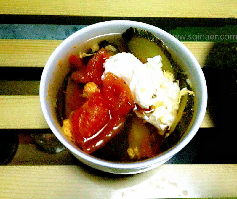 汤里还可以放入虾皮和紫菜,那就是紫菜汤了,做饭其实都一样。