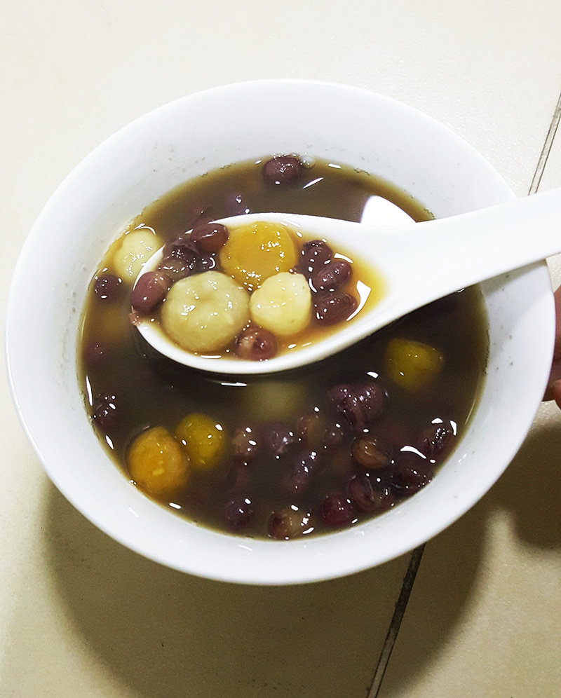 13:先盛出红豆汤,再放入小圆子,OK开喝啦。