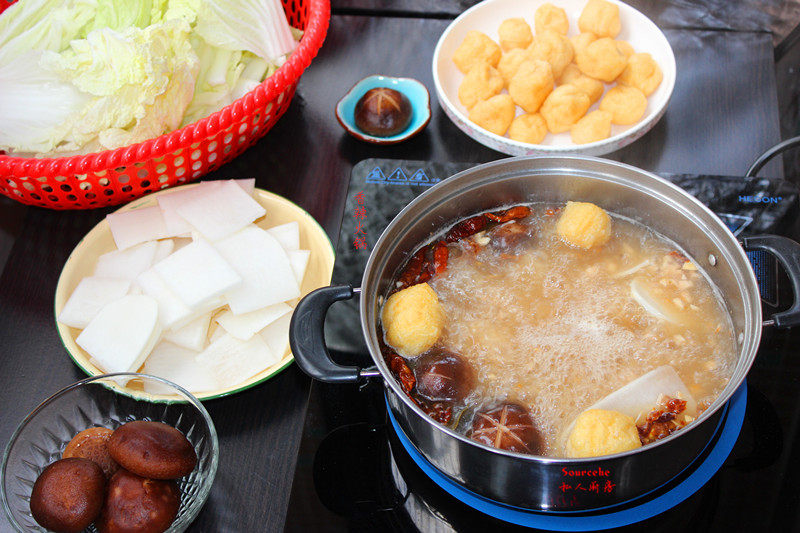 3:放入各种冷冻的丸子烧开。