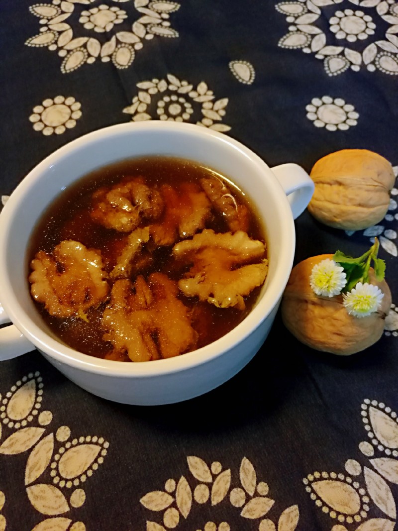 1:10粒纸皮核桃剥好,放入开水中浸泡约10分钟,待水温变凉些,用手将核桃表皮的膜搓掉,这样可以很好的去除核桃的涩味,炖出来的汤口感更好哦。
